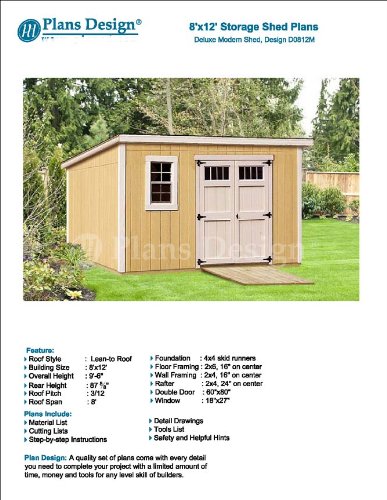 Garden sheds plans -Gardening is being favorite actifities right now,A lot of people want have Bakyard,That why if alot of people looking for Garden sheds plans,That why we will give you best review for Garden sheds plans to give you an ideas went you bought Garden sheds plans.8' x 12' Deluxe Back Yard Storage Shed Project Plans, Do it yourself, Modern Roof Style Design # D0812M are being favorite right now,a lot of people says that this 8' x 12' Deluxe Back Yard Storage Shed Project Plans, Do it yourself, Modern Roof Style Design # D0812M its one of more cheap Garden sheds plans